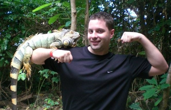No, he’s not going to punch the iguana. Ryan is merely flexing his ample muscles to reflect how holding a probably poisonous relative of a dinosaur makes him incredibly “hardcore” and a man of the animals, too.
